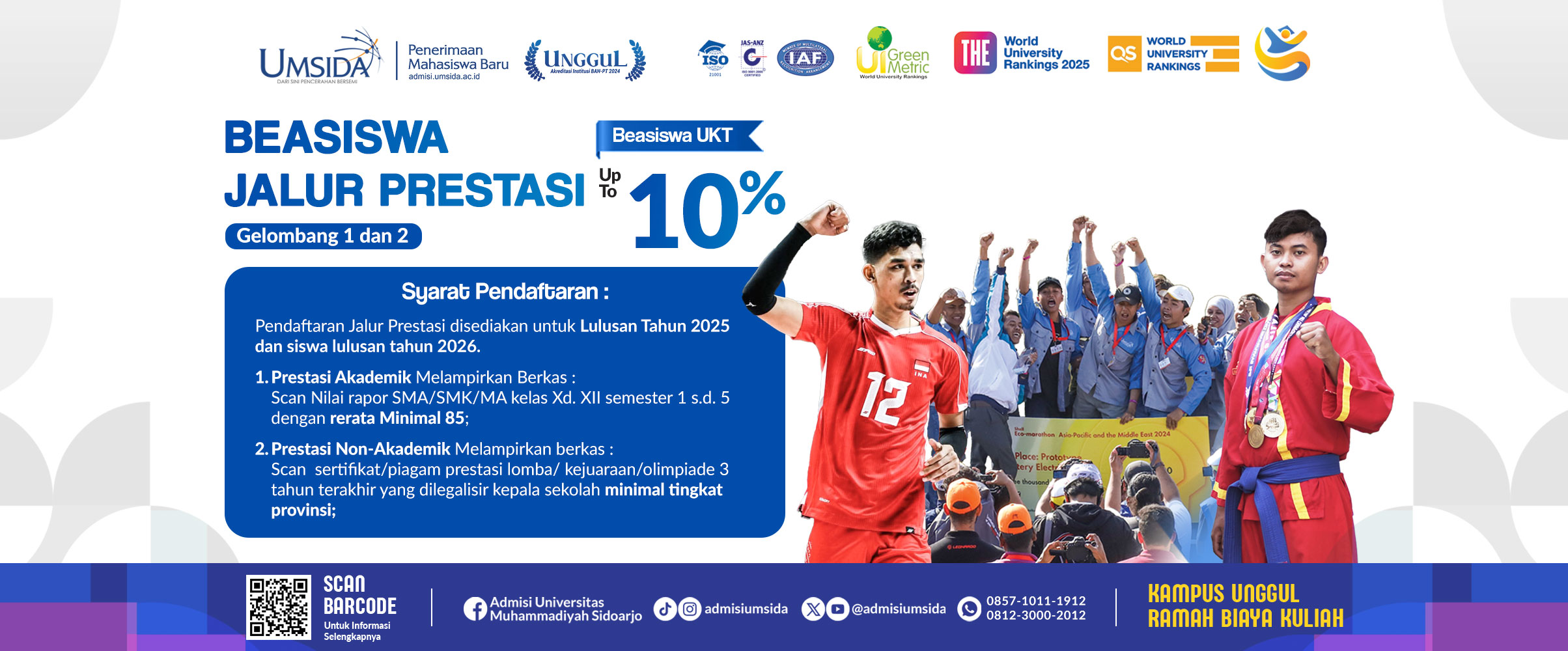 Sebagai Perguruan Tinggi yang unggul dan inovatif, Umsida menjadi pilihan tepat yang memberikan pendidikan secara profesional untuk mencetak generasi hebat dan menemukan minat di bidang IPTEKS berlandaskan nilai islam