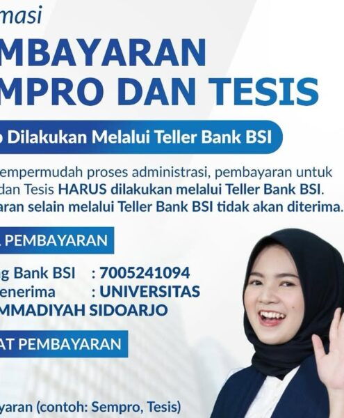 Fai.umsida.ac.id – Dalam rangka meningkatkan ketertiban dan akurasi administrasi keuangan, Universitas Muhammadiyah Sidoarjo (Umsida) melalui Direktorat Keuangan mengumumkan bahwa seluruh pembayaran untuk kegiatan Seminar Proposal (Sempro) dan Tesis, khususnya bagi...