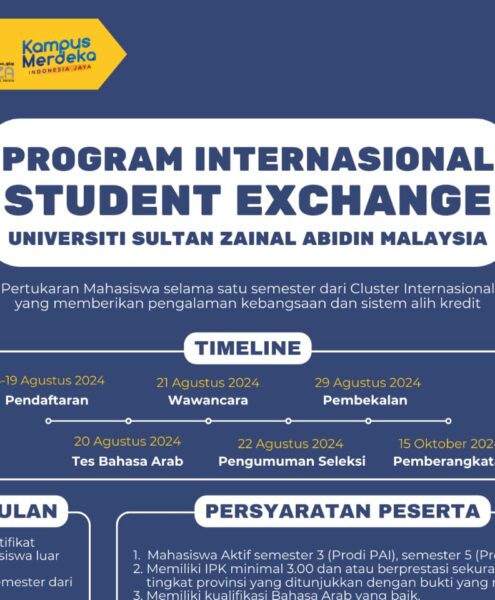 Fai.umsida.ac.id – Program internasional Fakultas Agama Islam (FAI) Universitas Muhammadiyah Sidoarjo (UMSIDA) dan Universitas Sultan Zainal Abidin (UNISZA) Malaysia kembali memperkuat kerjasama akademiknya melalui program pertukaran mahasiswa. Seleksi intensif untuk...