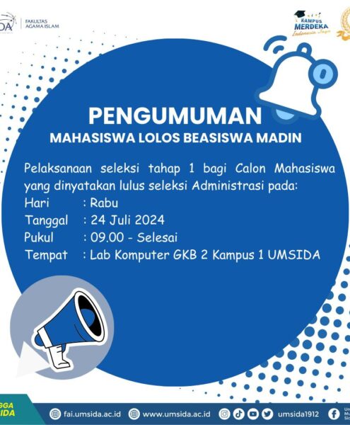 Pada Hari Sabtu, 29 Juni 2024 Umsida menyelenggarakan wisuda untuk yang ke 43. Fakultas Agama Islam pada wisuda kali ini ikut sesi ke 2, karena jumlah wisudawan ke 43 ini...