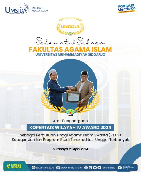 Fakultas Agama Islam – Umsida (Universitas Muhammadiyah Sidoarjo) meluluskan 143 Mahasiswanya di Aula KH Mas Mansoer GKB 2 lantai 7 pada Kamis, 06 Juni 2024 pada yudisium ke 43 kali...
