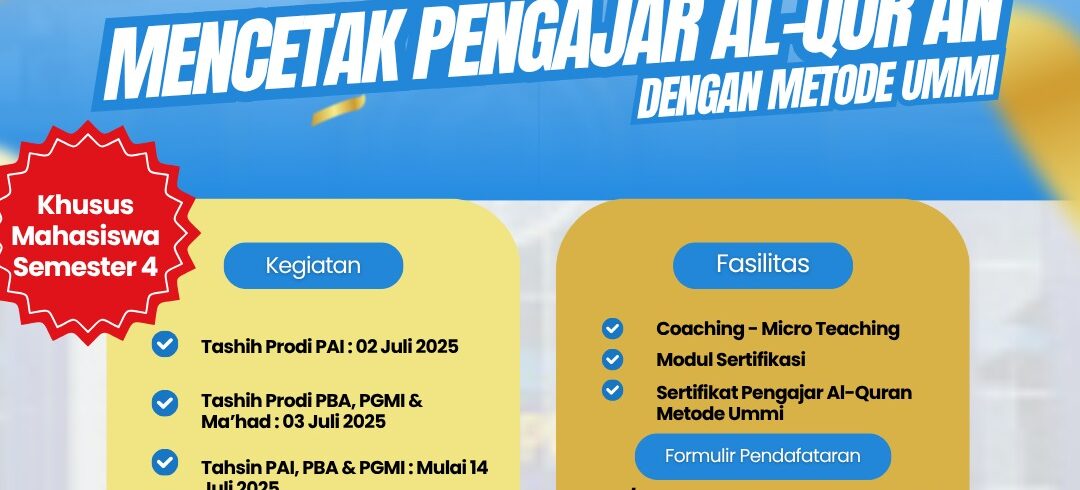 Fai.umsida.ac.id – Buka program sertifikasi ummi, Fakultas Agama Islam Universitas Muhammadiyah Sidoarjo (FAI Umsida) kembali menunjukkan komitmennya dalam meningkatkan kualitas pendidikan Al-Qur’an dengan mengadakan program Tarbiyah Qur’ani bekerja sama dengan Ummi Foundation. Baca Juga: Kembali Juara! Mahawira Peroleh Medali Perunggu di Kumite Piala Gubernur Jatim...Read More