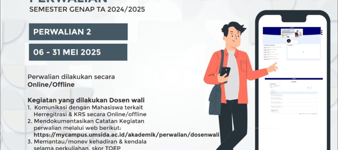 Fai.umsida.ac.id – Direktorat Akademik Universitas Muhammadiyah Sidoarjo (Umsida) kembali mengumumkan dibukanya Periode Perwalian Semester Genap Tahun Akademik 2024/2025, termasuk bagi seluruh mahasiswa Fakultas Agama Islam (FAI). Perwalian dilaksanakan selama hampir satu bulan penuh, mulai dari tanggal 6 hingga 31 Mei 2025. Baca juga: Pengumuman UTS...Read More