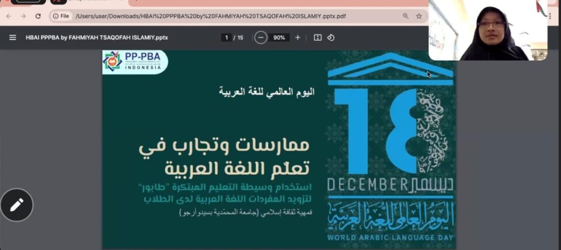 Fai.umsida.ac.id.Tampil di forum internasional, Mahasiswi Fakultas Agama Islam (FAI) Universitas Muhammadiyah Sidoarjo (Umsida), Fahmiyah Tsaqofah Islamiy, berhasil mewakili Umsida dalam ajang prestisius “الندوة الدولية بمناسبة احتفاء بلغة الضاد ودورها الحضاري 2024” (Seminar Internasional dalam Rangka Hari Bahasa Arab Sedunia 2024). Baca Juga:Ujian Akhir Semester (UAS)...Read More