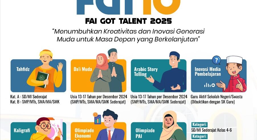 Fai.umsida.ac.id- FAI Got Talent 10 Resmi dibuka,Fakultas Agama Islam Universitas Muhammadiyah Sidoarjo (FAI Umsida) dengan bangga mengumumkan pembukaan acara bergengsi tahunan,ini dengan Mengusung tema “Menumbuhkan Kreativitas dan Inovasi Generasi Muda untuk Masa Depan yang Berkelanjutan,” ajang ini menjadi wadah bagi generasi muda dari seluruh Indonesia...Read More