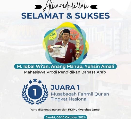 Fai.umsida.ac.id-Juarai ajang Fahmil Qur’an,Mahasiswa Program Studi Pendidikan Bahasa Arab (PBA) Fakultas Agama Islam Universitas Muhammadiyah Sidoarjo (FAI Umsida) berhasil mencatatkan prestasi luar biasa di kancah nasional. Tim Fahmil Qur’an yang terdiri dari Anang Ma’rup, Iqbal Wi’an, dan Yuhsin Amali berhasil meraih Juara 1 dalam kompetisi...Read More