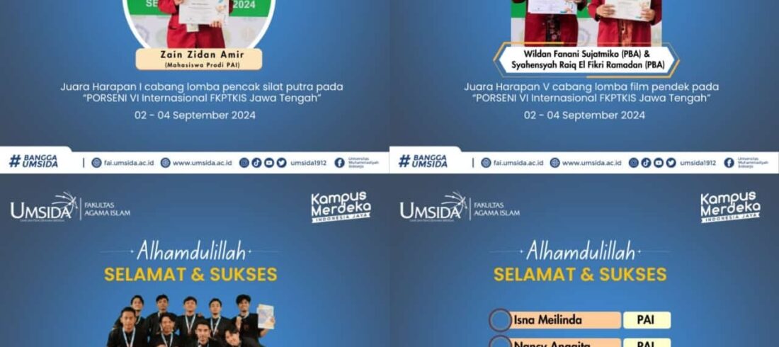 Fai.umsida.ac.id-Mahasiswa Fakultas Agama Islam (FAI) Universitas Muhammadiyah Sidoarjo (Umsida) kembali mencatatkan prestasi gemilang pada ajang Pekan Olahraga, Seni, dan Ilmiah (PORSENI) VI Internasional FKPTKIS Jawa Tengah. Acara ini diselenggarakan pada 2-4 September 2024, dengan berbagai cabang lomba yang mempertemukan para mahasiswa dari berbagai universitas di...Read More
