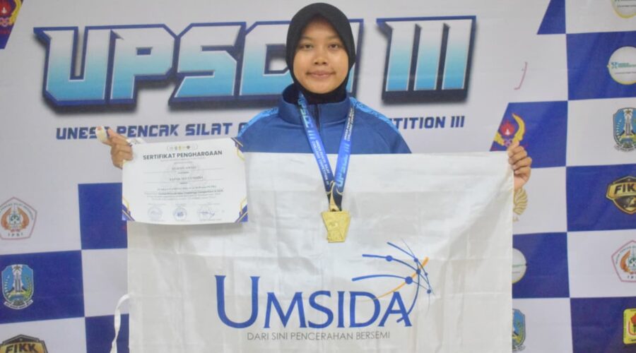 Fai.umsida.ac.id – Mahasiswi Fakultas Agama Islam (FAI) Umsida dari Program Studi Pendidikan Agama Islam (PAI) semester 5, Putri Hikmiyatil Latifah yang akrab disapa Hikmah, berhasil meraih medali emas pada ajang UNESA Pencak Silat Challenge Competition III (UPSCC III) tingkat nasional yang digelar pada 18–21 Desember 2025 di GOR Internasional Unesa, Lidah Wetan, Surabaya. Baca Juga: Debut di UPSCC III Unesa, Mahasiswa FAI Ini Langsung Sabet Emas setelah melalui persaingan ketat...Read More