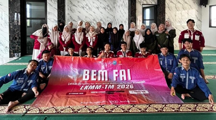Fai.Umsida.ac.id—Badan Eksekutif Mahasiswa Fakultas Agama Islam (BEM FAI) Umsida menyelenggarakan Latihan Keterampilan Manajemen Mahasiswa Tingkat Menengah (LKMM-TM) 2026 bertema Penguatan Kepemimpinan Mahasiswa Berbasis Sejarah yang Kritis di Era Society 5.0 pada Sabtu–Minggu (14–15/2/2026). Kegiatan dimulai di Kampus 1 Umsida, lalu agenda dilanjutkan di SMP Muhammadiyah 10 Sidoarjo setelah sesi siang, sebagai bagian dari rangkaian pembelajaran dan penguatan dinamika organisasi. Pada pembukaan, peserta mengikuti rangkaian seremoni mulai dari registrasi, pembacaan kalam...Read More