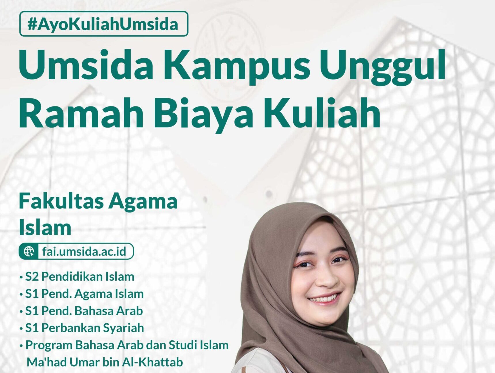 Fakultas Agama Islam Universitas Muhammadiyah Sidoarjo (Umsida) merupakan pilihan yang tepat bagi calon mahasiswa yang mencari pendidikan berkualitas dengan biaya yang terjangkau dan waktu penyelesaian yang cepat. Dengan hampir seluruh program studi yang terakreditasi unggul, FAI Umsida memastikan bahwa setiap mahasiswa yang menempuh pendidikan di sini akan mendapatkan pengalaman belajar yang relevan dan aplikatif. Biaya pendidikan yang ramah dan adanya berbagai beasiswa memberikan kemudahan bagi mahasiswa dari berbagai latar belakang ekonomi untuk memperoleh pendidikan yang berkualitas.