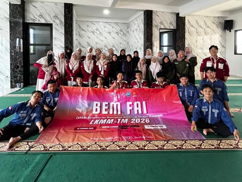 Fai.Umsida.ac.id—Badan Eksekutif Mahasiswa Fakultas Agama Islam (BEM FAI) Umsida menyelenggarakan Latihan Keterampilan Manajemen Mahasiswa Tingkat Menengah (LKMM-TM) 2026 bertema Penguatan Kepemimpinan Mahasiswa Berbasis Sejarah yang Kritis di Era Society 5.0 pada Sabtu–Minggu (14–15/2/2026).