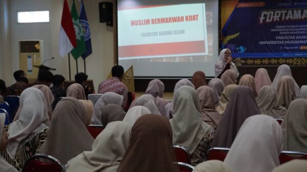 Fai.umsida.ac.id – Semangat menjadi Muslim bermarwah kuat menjadi pesan utama dalam kegiatan Kuliah E-Tiket yang disampaikan oleh Kemahasiswaan Fakultas Agama Islam (FAI) Universitas Muhammadiyah Sidoarjo (Umsida) pada gelaran Forum Ta’aruf Mahasiswa (Fortama) FAI 2025 yang berlangsung di Aula Mas Mansyur, Sabtu (11/10/2025).